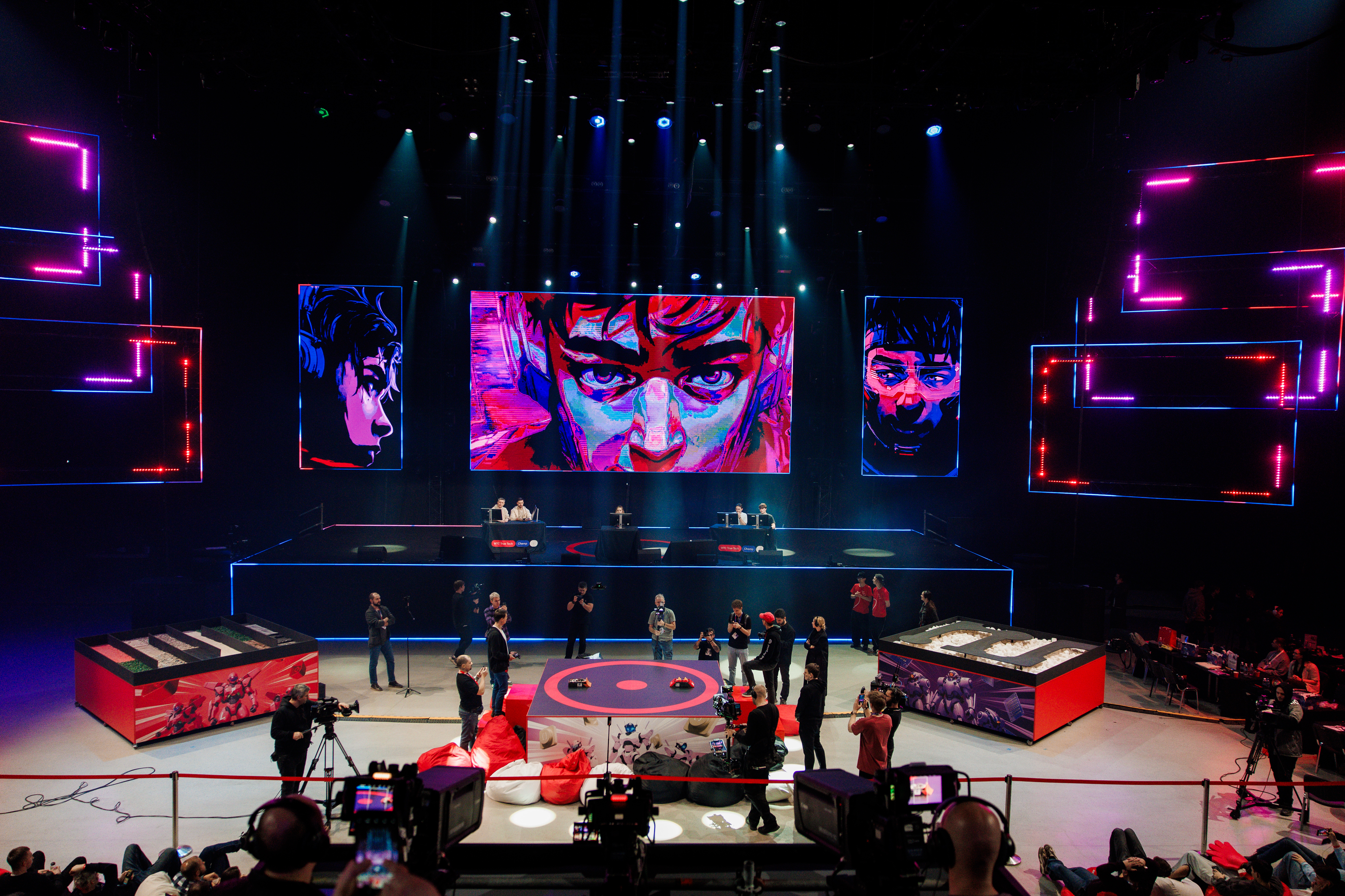 True Tech Champ включал два трека: участники первого решали алгоритмические задачи и работали со структурами данных в индивидуальном зачете, второго — собирали и программировали роботов, соревнуясь в командах. И если в первом треке участники погружались в тишину, решая индивидуальные задачи, то участники второго — устраивали настоящую битву, которая проходила в три этапа и закончилась шоу с болельщиками и профессиональным комментатором.
